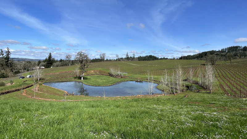 Imagine RV Camping perched atop sweeping vineyard-covered hills at this 15-acre estate winery. Park in a rolling-valley setting complete with water and restroom amenities, then wander the rows of Pinot Noir, Chardonnay, Sauvignon Blanc, Aligoté and Gamay Noir. Guided tastings and seasonal charcuterie pair with live piano music in a rustic barn, with sunset views of a tranquil pond and wildlife reserve. Reservations Thu–Sun.