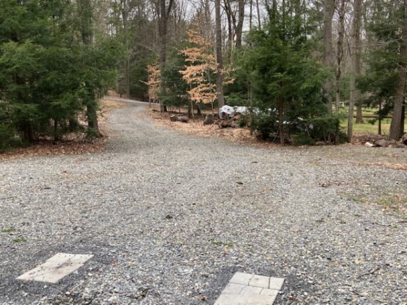 This is my residence on 1.3 acres. Parking is on the side rock driveway or next to a garage if 110v power is needed. It's wooded property in a quiet residential neighborhood with large lots. Fine place to park for a night or so.