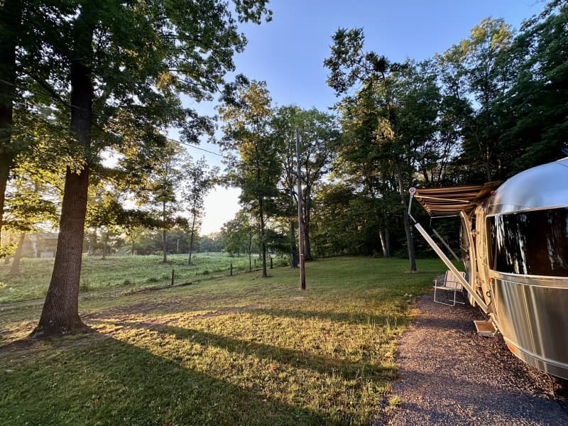 Experience RV Camping on two secluded gravel pads nestled along a historic 18-hole fairway amid rolling mountain scenery. Each site offers 30 Amp electric hookups, non-potable water, picnic table, fire pit and level grounds. A short walk across cart paths leads to a public lounge, snack shack, driving range, putting green, lessons and seasonal tournaments. Quiet, private and perfect for golfers or nature enthusiasts; extra nights welcome.