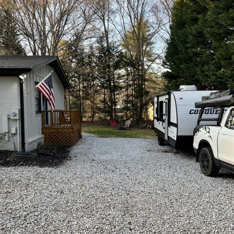 We AirBNB our Camper, as well offer on RVSHARE and OUTDOORSY, or Tiny House offers a Gravel Driveway on a Dead End Street for a quick stop while visiting Greenville. Everything is literally five minutes from our house. Uber and Lyft are readily available.