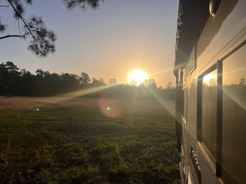 Drift into serene RV Camping on a lush 55-acre farm framed by pine and oak groves. Three full-hookup sites (30/50 AMP) and two 110 V pads invite you to unwind amidst hayfields, two bass-stocked ponds, and nightly visits from friendly mallard ducks. Bike or stroll on quiet country roads, watch wildlife at sunset, and stargaze under dark skies. Pet-friendly and perfect for multi-night stays.