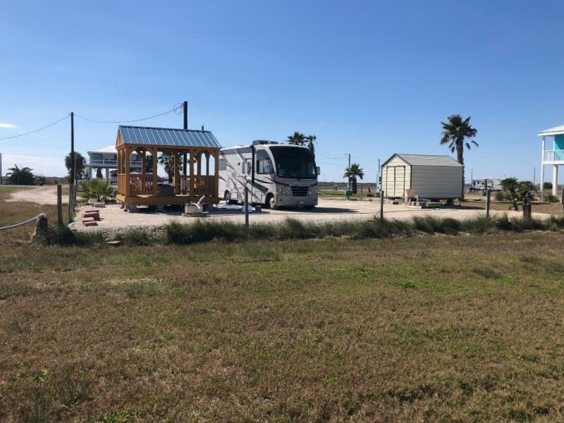 Beachfront RV spot at Magnolia Beach, Texas. Privately owned lot with room for visitors.