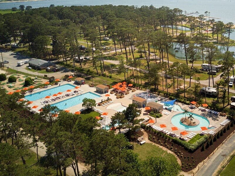 We offer a great selection of RV sites, Lodging, and Tent Sites with favorites like our cottages and glamping tents. Guests also have exclusive access to our resort amenities that include our five swimming pools, Cafe/lounge, large dog park, and themed weekend events.