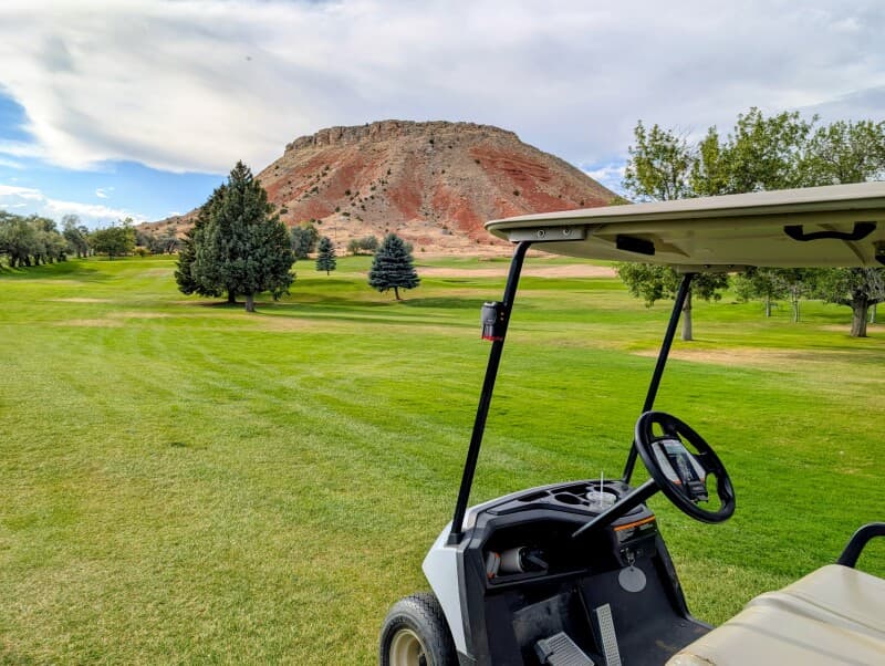 Tee off in a scenic 9-hole golf course nestled against a majestic mountain backdrop. This peaceful RV camping destination offers level grassy sites by the driving range and easy in-and-out access for Class A motorhomes. Watch antelope roam at sunset, purchase range balls for an evening practice session, or enjoy a morning round with cart rental included. Hike nearby trails directly from your site, explore a charming local town, and relax in the welcoming pro shop--ideal for golf lovers and outdoor enthusiasts alike.
